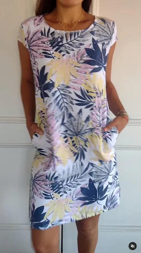 🌷49% RABATT❤️🔥Bedrucktes Kleid mit Rundhalsausschnitt aus Baumwolle und Leinen für Frauen